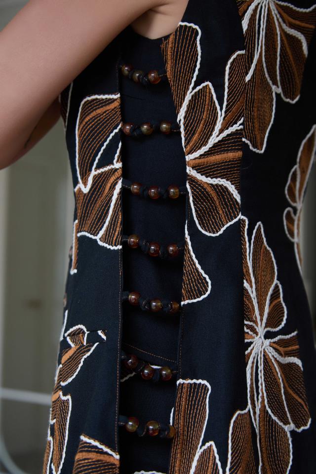 La mariposa transforma, añade, eleva. El Chaleco Mariposa de Camaleónica hace exactamente eso: es la capa que convierte un look en un conjunto. Fondo negro con gran estampado floral en caramelo y blanco — el mismo print del Top Bambi y la Falda Topito — que forma cuando se unen uno de los tríos de prendas coordinadas más impactantes de la colección SS26.